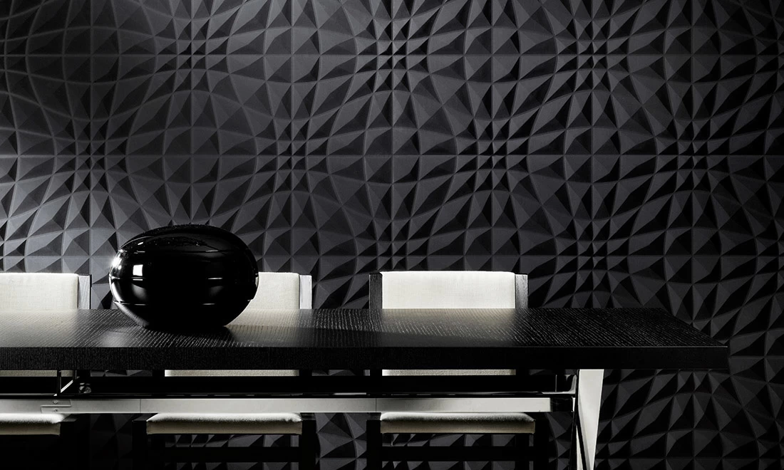 Flex heeft een combinatie van geometrische vormen die het eindresultaat opleveren van een mooi, maar visueel uitdagend patroon. Clear Pro Adhesive wordt aanbevolen. Mooie driedimensionale textiele wandbekleding op vliesrug. Uitgelicht in de Eclipse collectie wandbekleding.