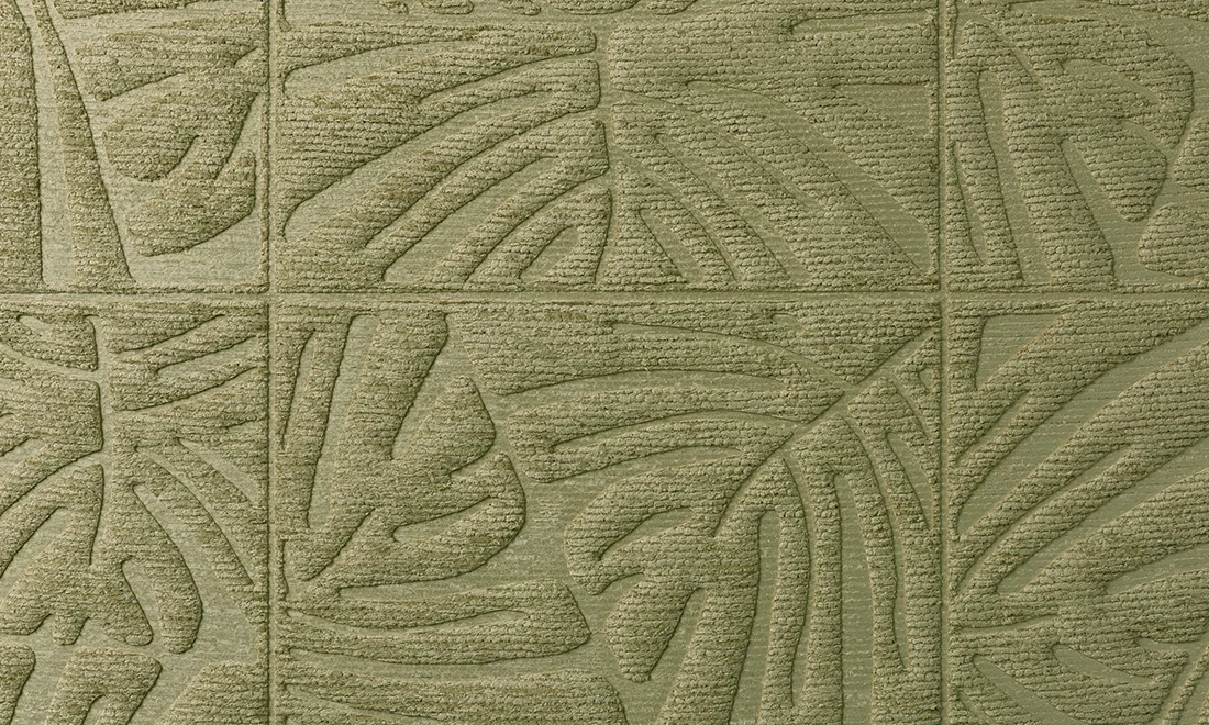 Monstera behang heeft een abstract palmbladpatroon dat verspringt en een prikkelend 3D effect heeft. Botanische motieven en jungletaferelen komen samen in deze collectie. Vlekwerend en waterafstotend, positieve akoestische werking.