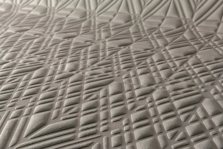 Materiaal:Â 3D textielmuurbekleding op vlies – muur inlijmen