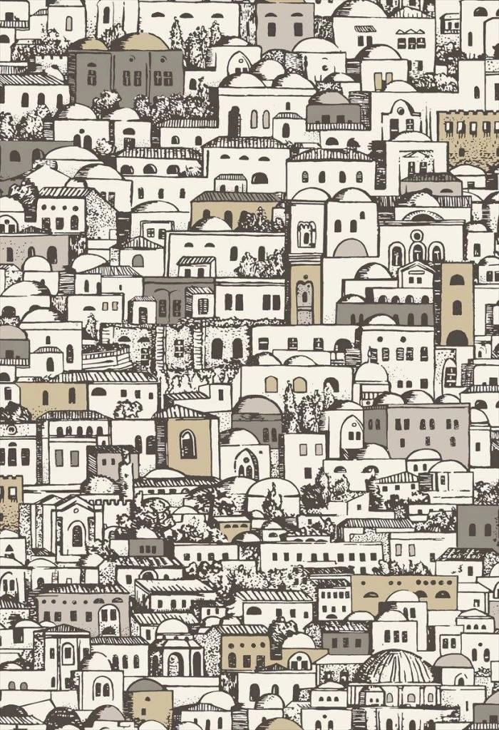 Oorspronkelijk bedacht in de late jaren 1940 voor de hal van Piero Fornasetti’s residentie in Milaan, Mediterranea is een uitgestrekt stadsbeeld van daken, koepels en ramen. Elk gedetailleerd element van de scène wordt tot leven gebracht door stralende metallic highlights en gedurfd lijnwerk, met opvallende grondtinten van wit en houtskool.
