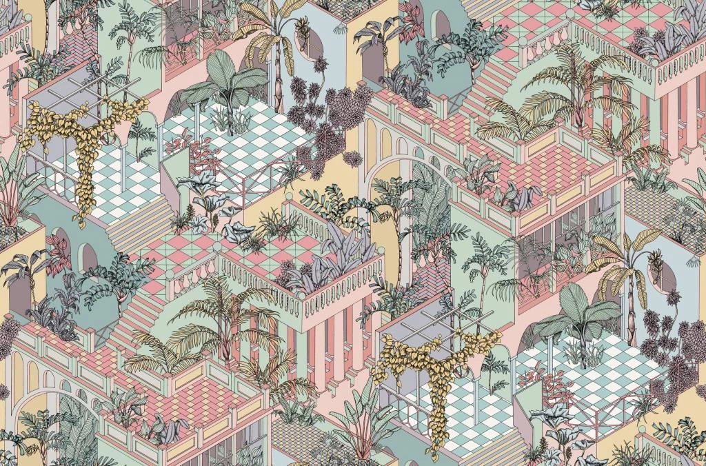 Als eerbetoon aan het epicentrum van tropische retrostijl, is het uitbundige Miami-ontwerp met lagen van terrasvormige colonnades en weelderige tropische vegetatie nu verkrijgbaar in twee nieuwe kleurstellingen; Roet en sneeuw voor een gedurfd, grafisch statement en Pastel, die de krijtkleurige architectuur van South Beach en de glamoureuze kitscherige sfeer weerspiegelt.