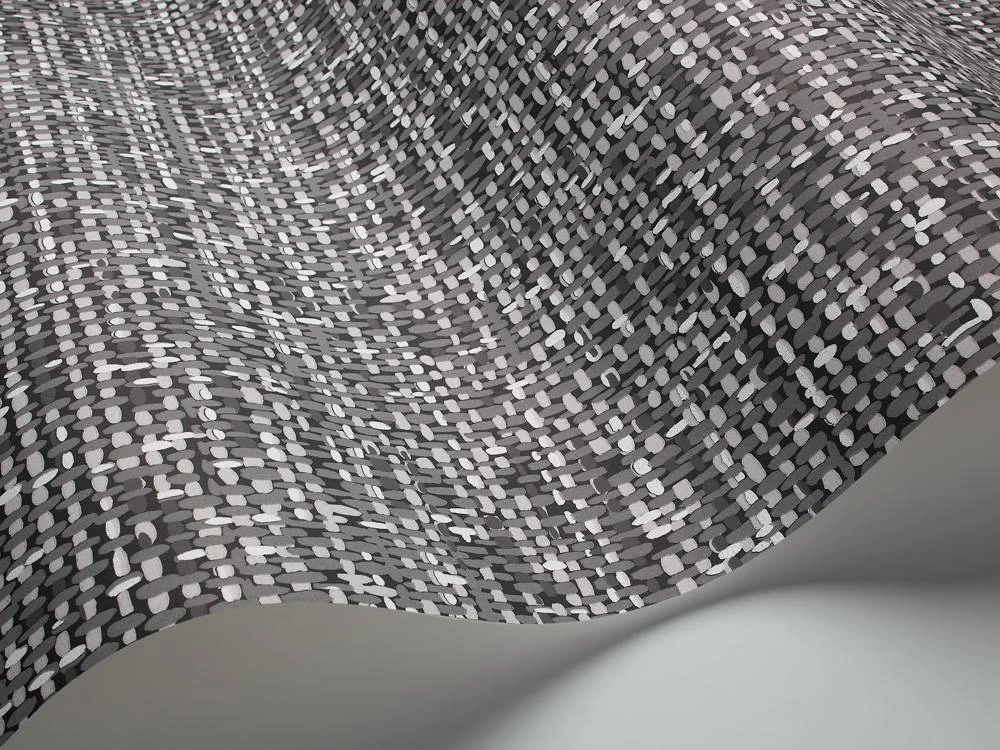 Vliesbehang uit de collectie Foundation van Cole & Son. Patroon Tweed (92/4017) met miniprint in kleur wit, grijs, donkerblauw en donkergrijs.