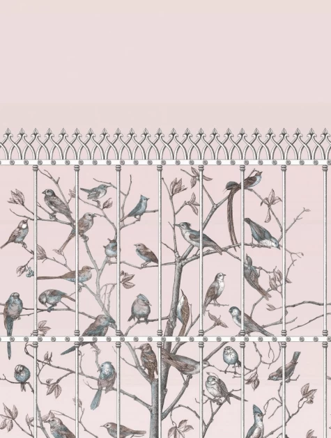 Uccelli, wat vogels betekent, is ontstaan als luxueuze vouwschermen met felgekleurde vogels van alle soorten die dunne takken sieren. Dit delicate motief is vertaald naar een prachtig ingewikkeld wandbekledingspaneel en brengt een sierlijke kwaliteit naar een zelfstandige functiemuur of, gebruikt in herhalingen, zorgt voor een prachtige volière vol detail en kleur. Cole & Son heeft deze arrestatiestudie bijgewerkt met twee nieuwe unieke kleuren, Ballet Slipper roze en Cerulean Sky.