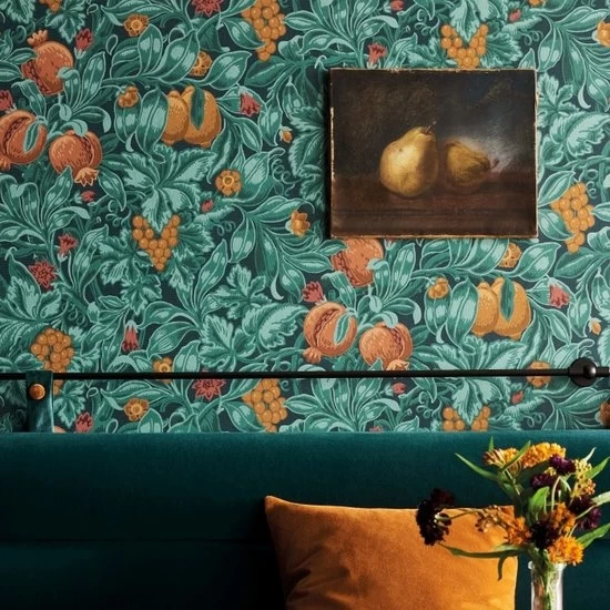 Cole and Son Vines of Pomona behang is een ode aan de Romeinse godin van de oogst en vruchtbare overvloed, Pomona. Dit ontwerp in Arts and Crafts-stijl is een overvloed aan fruit en wijnstokken. Een behang waar de natuur en traditionele vakmanschappen worden gepresenteerd in klassiek botanische paletten.