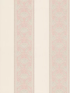 Een decoratief dessin zorgt voor een opvallend contrast in deze streepcollectie. Verney heeft het karakter van een houtblokprint met paisleymotieven die binnen de brede gedessineerde streep worden gehouden; het is verbonden met de Carissa sheer. De zachte, tegendraadse kleuren zorgen voor een subtiel effect.