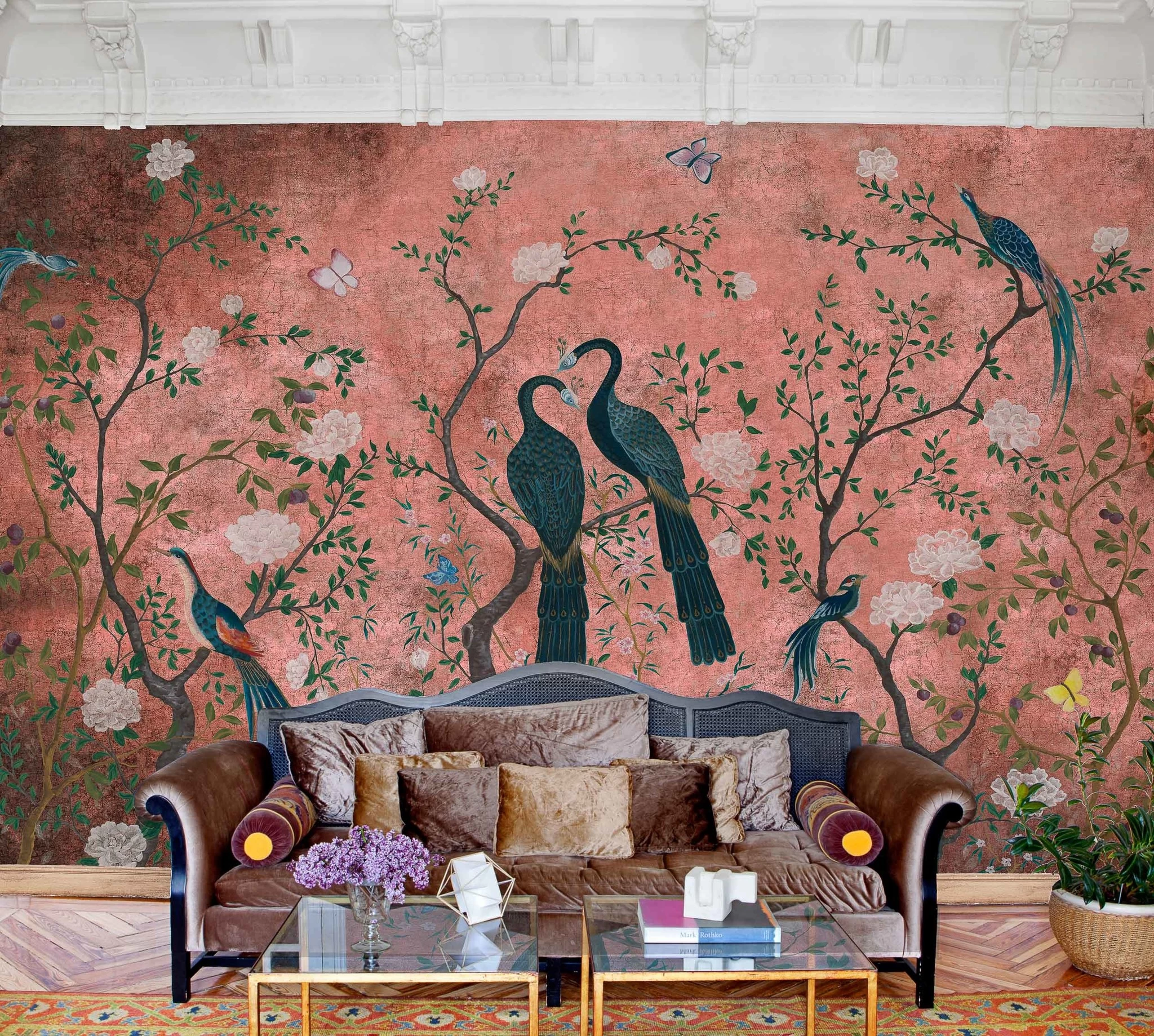 Het CoordonnĂ© Edo Pink chinoiserie behang is een botanisch behang met prachtige bloemen en takken waar sierlijke vogels hun weg in vinden. Door de mooie volle kleuren en de sierlijke vormgeving straalt dit paneel stijl en luxe uit.Â