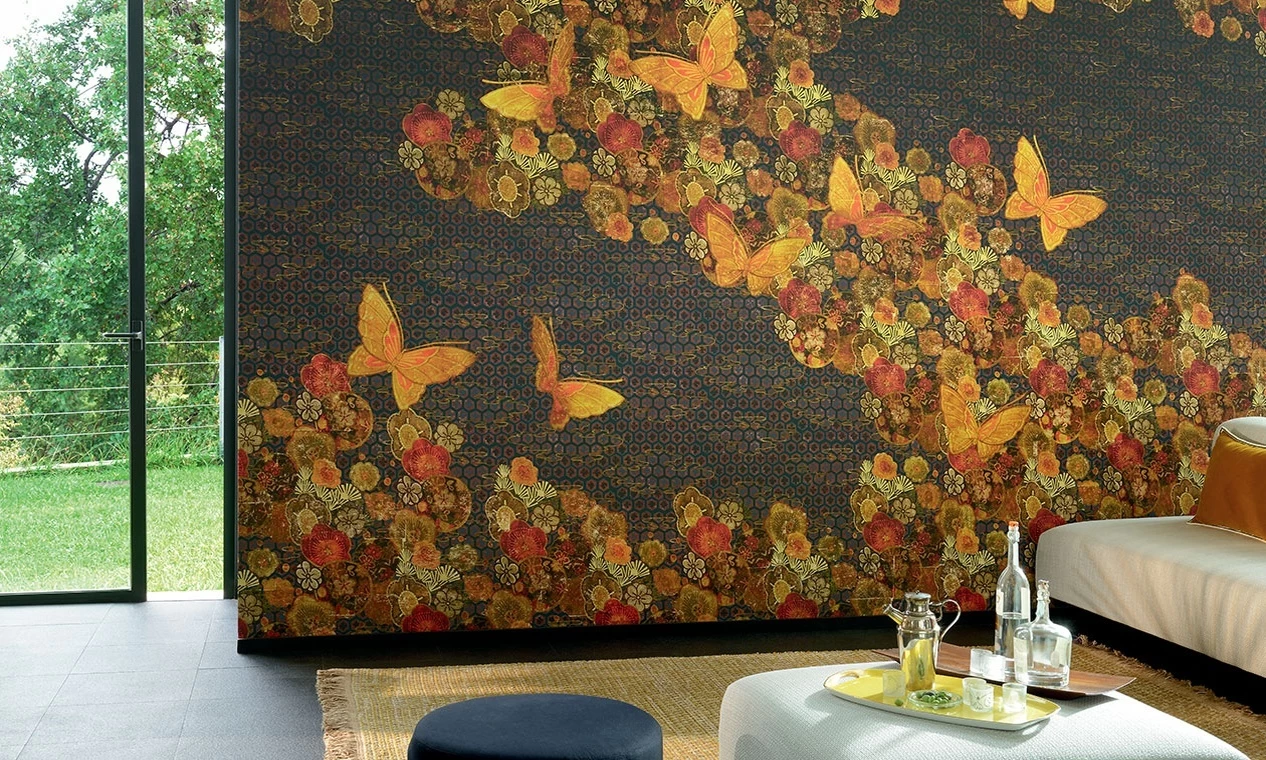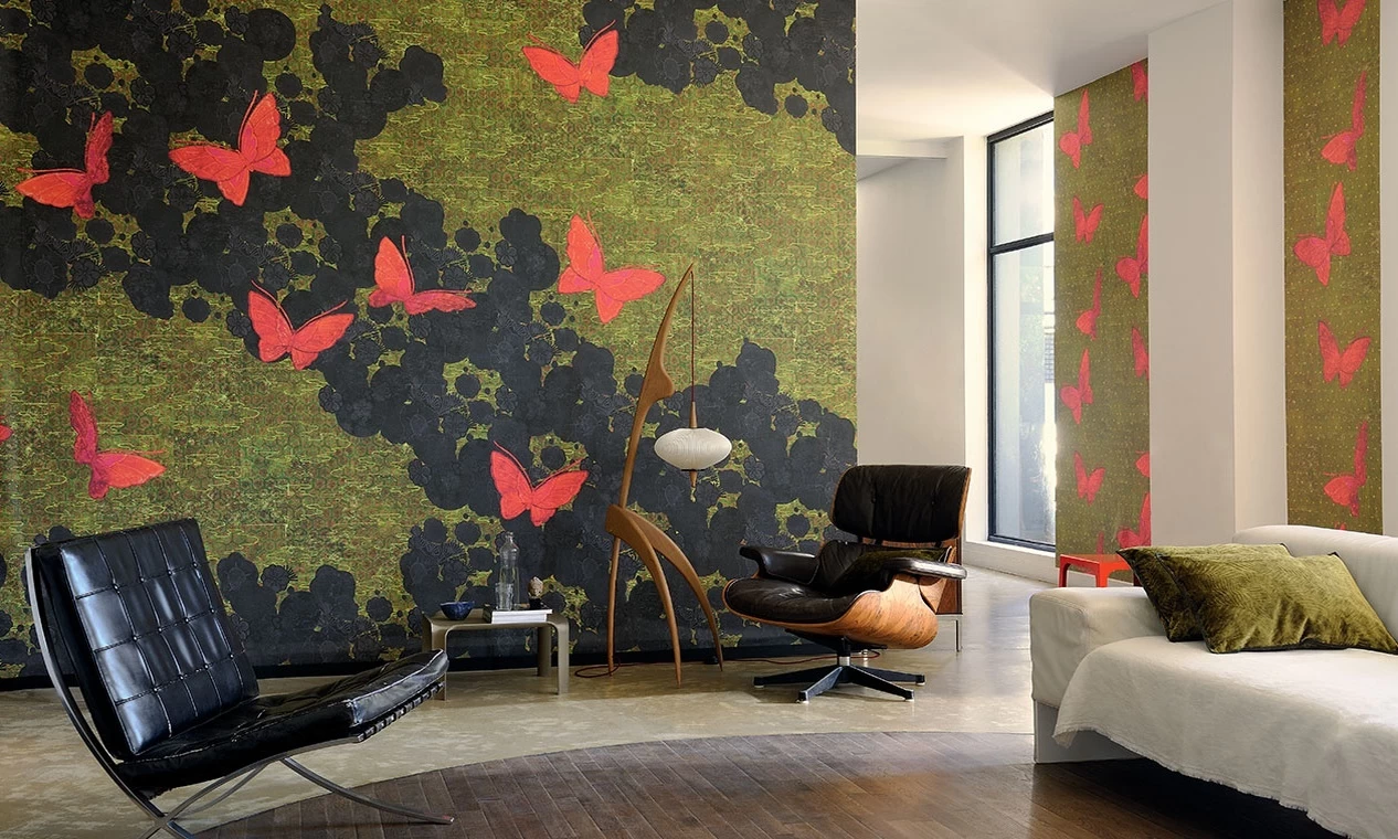 De fijne patronen, structuren en bijzondere kleurstellingen van het eigentijdse Franse luxe behangmerk Élitis zorgen ervoor dat ruimtes veranderen in levende kunstwerken.