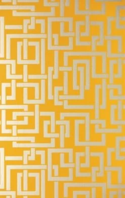 Het geometrisch behang Farrow and Ball Enigma heeft een prachtig geometrisch patroon van vierkanten die in elkaar grijpen.