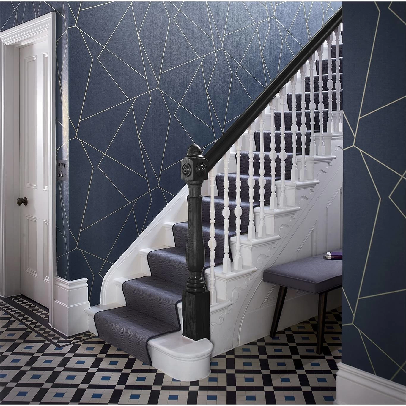 Met een reliëf linnen look en metallic lijnen, heeft deze opvallende geometrische wandbekleding op grote schaal een abstract architectonisch gevoel.