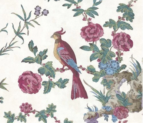 Darwin (c1760) vertegenwoordigt een van de belangrijkste recente aanwinsten van de Whitworth Art Gallery en, met een twist in het verhaal, werd dit voorbeeldige Engelse stuk eigenlijk intact gevonden in een huis in Aix-en-Provence, Frankrijk. Het exotische tafereel imiteert nauwkeurig een typisch 18e-eeuws handgeschilderd Chinees papier, maar de belastingstempel, nog steeds zichtbaar op de achterkant van het originele lompenpapier, identificeert het categorisch als Engels van oorsprong. De kleuren geïnterpreteerd in de ‘Serein’-kleurstelling zijn zeer trouw aan het origineel – een verrassend (en prachtig) goed bewaard gebleven archiefdocument.
