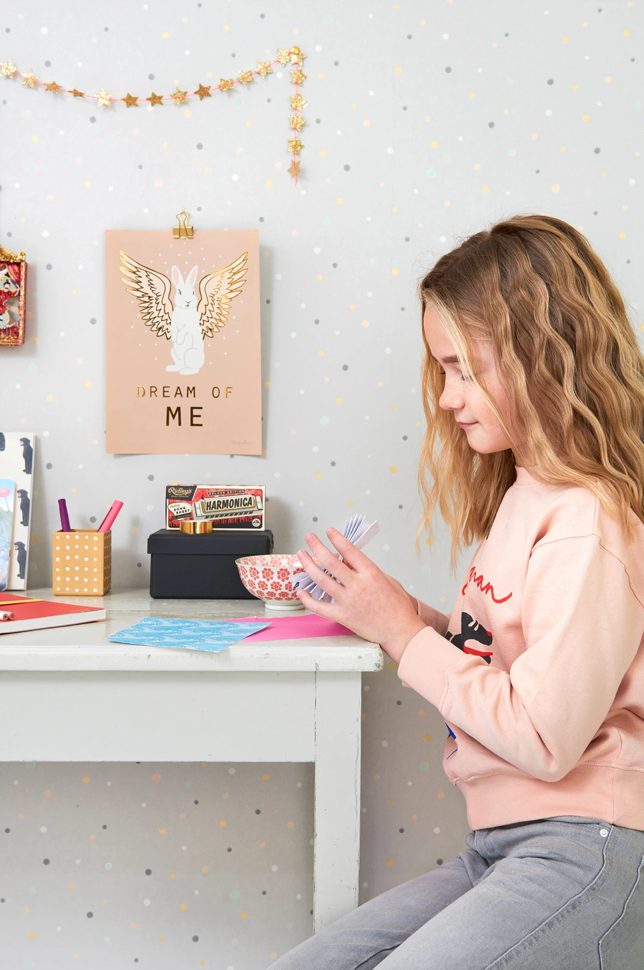 Majvillan is een Zweeds merk dat in 2013 is opgericht door ontwerpster Charlotta Sandberg. Het merk staat bekend om zijn figuratieve en grafisch patronen in pastelkleuren in combinatie met grijze en crème tinten, soms met goud voor extra glans. Alle producten worden milieuvriendelijk geproduceerd en van de hoogste kwaliteit, om een lange levenscyclus te garanderen. De collectie ´Wish upon your dreams’ is een eerbetoon aan de sprookjes en verbeelding uit de kindertijd.