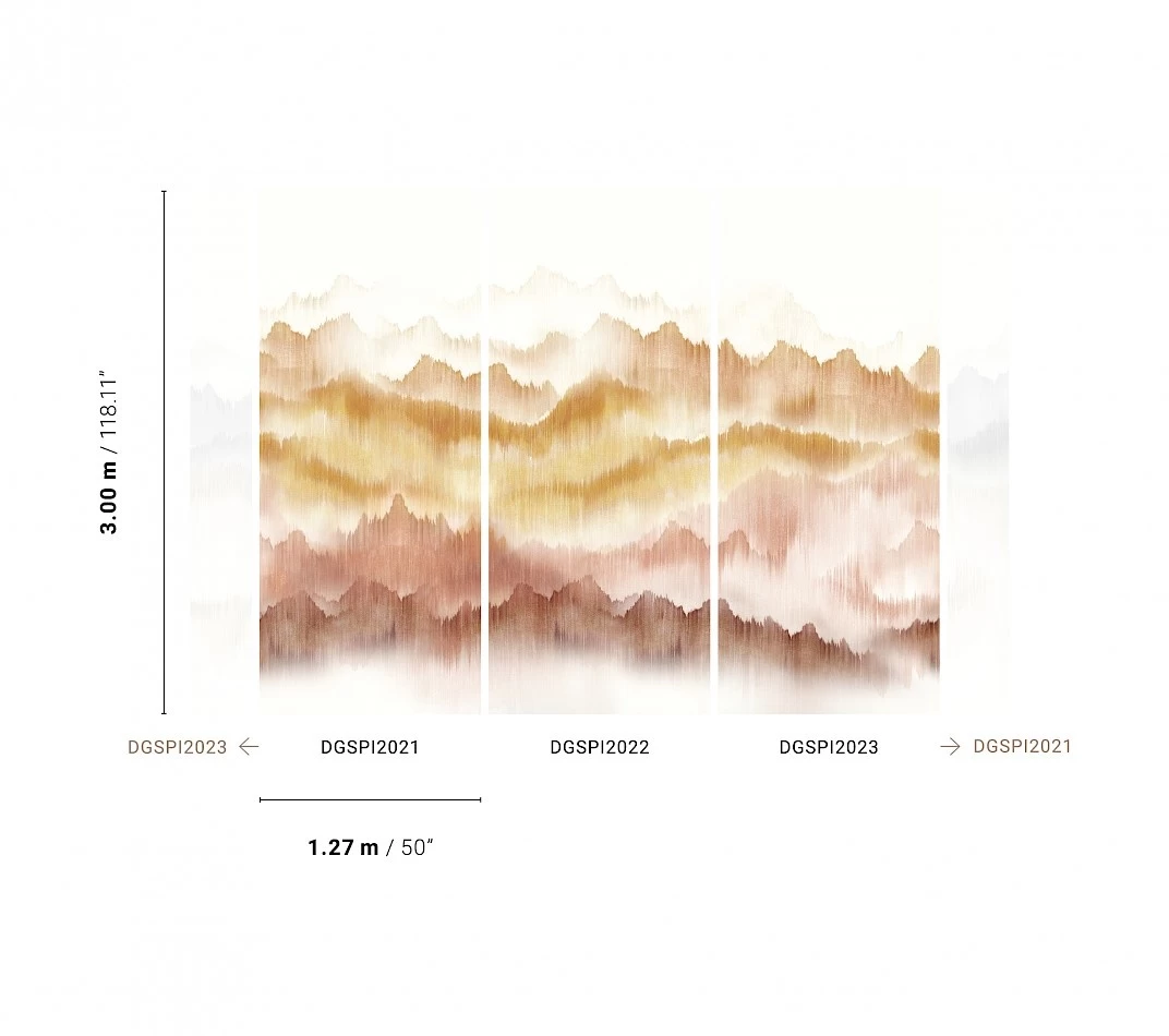 Let op: Dit paneel bestaat uit 3 banen. Deze banen zijn ieder 3 meter hoog en 127 centimeter breed. Samengevoegd is het paneel dus 3 meter hoog en 3,81 meter breed. Je maakt deze mural compleet door de 3 panelen met artikelcodes DGSPI2021, DGSPI2022 en DGSPI2023 te bestellen (zie afbeelding).