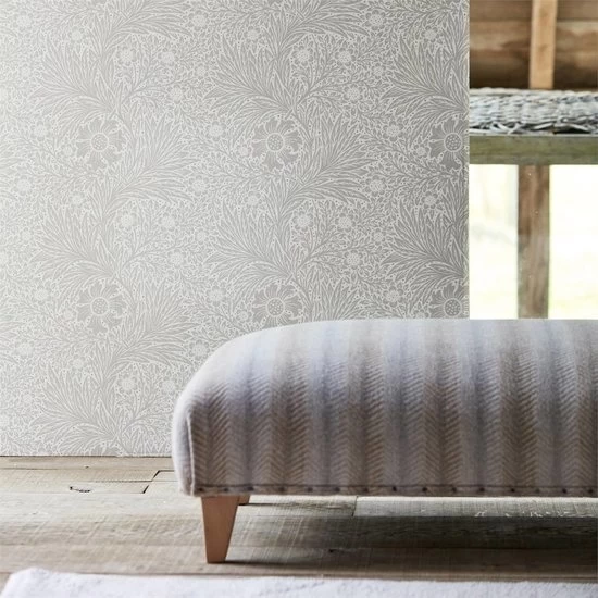 Puur Marigold behang Morris & Co van William Morris is een lieflijk behang met een bloemen (goudsbloem) en bladpatroon. Morris creëerde prachtige patronen in één kleur die goed werkten op zowel behang als stof. Elegant en veelzijdig behang met een langdurige aantrekkingskracht.