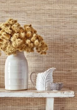 Een chique en luxe collectie die gebruik maakt van natuurlijke materialen zoals kurk en bamboe om sublieme metallic effecten en patina’s te creëren. Kurkreferenties combineren patina-effecten met metalen spikkels of tonen gedrukte geometrieën in perspectief. Andere referenties zijn onder meer onregelmatig geweven bamboe, zware texturen met een metalen afwerking en een strak geweven ‘fil a fil’ metalen stof met een papieren achterkant.