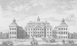 Het origineel van deze grote muurschildering is een oudere ets van het kasteel van Löfstad, gemaakt in de 17e eeuw. De ets is te vinden in het werk van Suecia Antiqua et Hodierna van Erik Dahlberg. De eerste versie van het kasteel, van de oude Axel Lillie, bevatte een buitentrap, torens met trapgevels en met figuren beschilderde gevels. Ontwerp: Originele 17e eeuwse ets