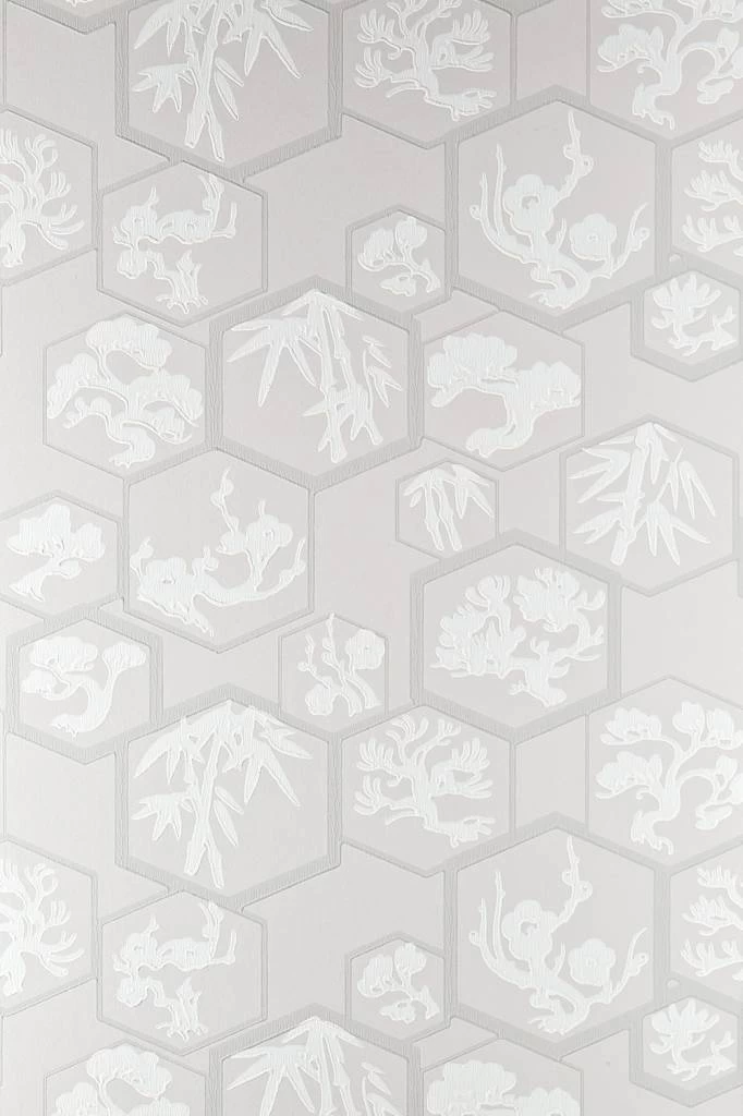 Shouchikubai behang van Farrow and Ball komt uit de Grace and Favour colletie. Het behang Farrow and Ball Shouchikubai betekent abrikoos, bamboe en dennenboom. Planten die geassocieerd worden met feestvieringen. Dit Oosterse behangpapier heeft bloemmotiveven, bamboe en bomen, omringd door hexagonale lijnen.