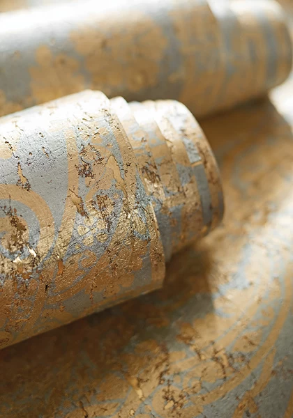 Curtis Damask, knap en stimulerend, is de perfecte balans tussen eigentijdse styling en traditioneel design met het middeleeuwse motief gedrukt op een achtergrond van kurk en folie.