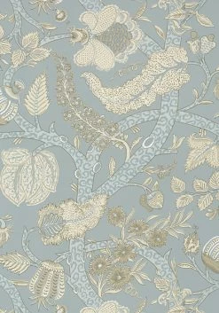 Thibaut Wallpaper Macbeth patroon is een grootschalig Jacobiaans patroon met gestileerde bloemen, bladeren en takken. Het behang wordt afgedrukt op 100% linnen en past bij alle kleuren in het behang.